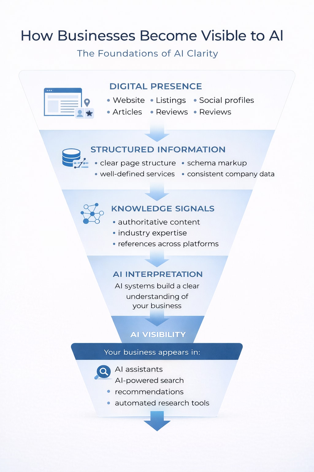 Businesses receive a clear score along with practical recommendations for improving their AI visibility and digital clarity.
